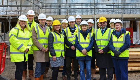 Representatives from Homes England, Stroud District Council, Standish Parish Council and the Mayor of Stonehouse, joined Two Rivers Housing for a site tour of seven new affordable homes being built on the old Stagholt Pavilion site in Stonehouse.